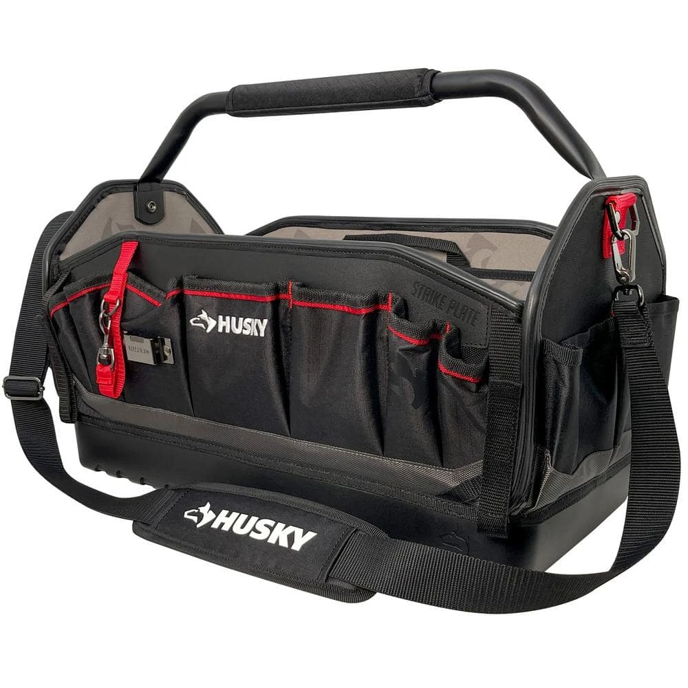 Built for the PRO, the 20 in. All-Trade Tool Tote is constructed of durable 1680D Polyester, reinforced ripstop pockets and waterproof hard base to withstand everyday jobsite usage. The 20 in. opening, removable wall and quick-disconnect handle allow for visibility and easy access to your tools. The 20 in. Tool Tote includes an easy-access tape clip, tape roll tether, and 31 total pockets to organize a variety of tools.