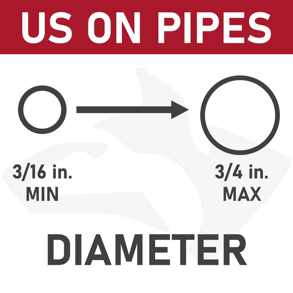 - Compatible with 3/16 in., 1/4 in., 5/16 in., 3/8 in., 1/2 in., 5/8 in., and 3/4 in. pipe sizes