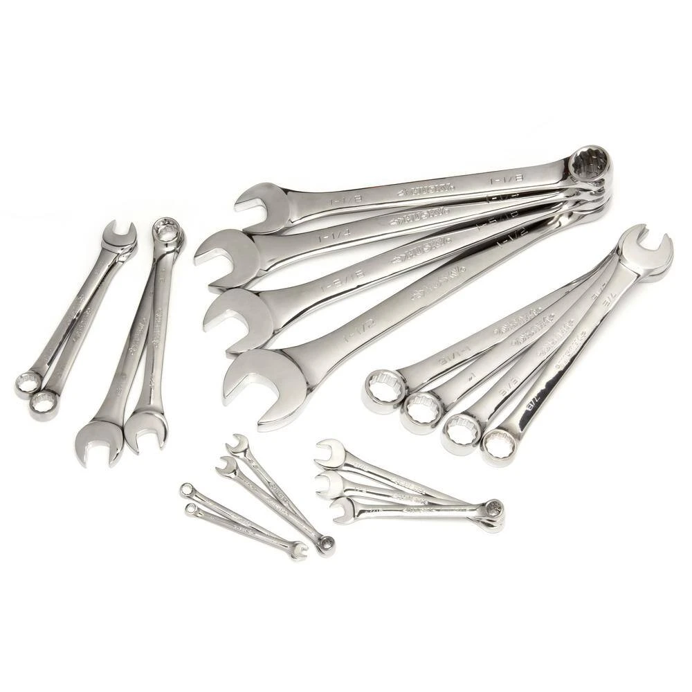 - Master SAE combo wrench set, 19-piece: 1/4, 11/32, 5/16, 3/8, 7/16, 1/2, 9/16, 5/8, 11/16, 3/4, 13/16, 7/8, 15/16, 1, 1-1/16, 1-1/8, 1-1/4, 1-5/16, 1-1/2 in.