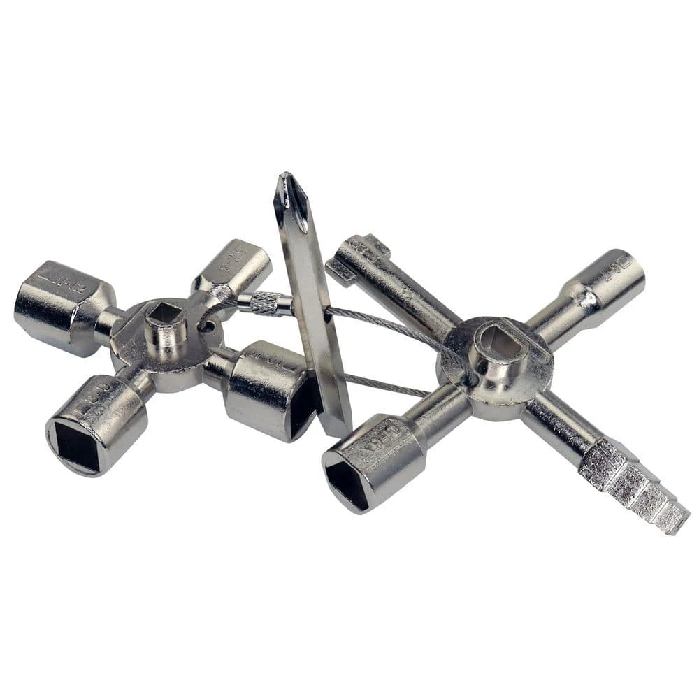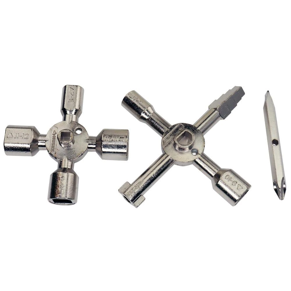 An essential tool for control cabinets and shut-off systems in the supply of gas, water and electricity, the universal control cabinet key is a must-have for use in technical installations in buildings to control air conditioning and ventilation systems, shut-off valves and main switchboards. A strong locking tool is a great advantage, particularly in the case of stiff locking systems. Sits well in the hand and can be used for powerful rotating movements on the locking systems you want to turn.