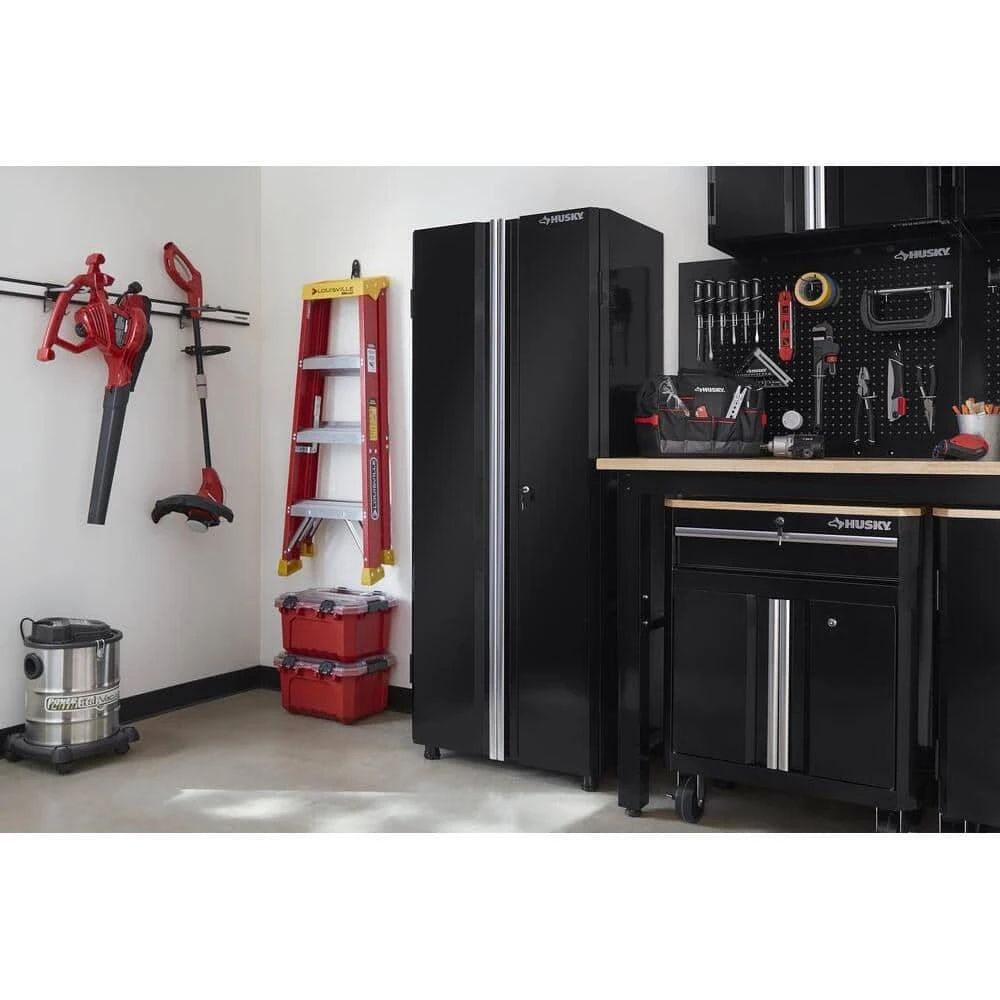 Get organized with this black Husky Ready-to-Assemble 24-Gauge Steel Freestanding Garage Cabinet (36 in. W x 72 in. H x 18 in. D). The three shelves are height adjustable to suit your needs. With interior door panel pegboards, you can create extra storage. An easy DIY project to install, it comes with all the necessary hardware.