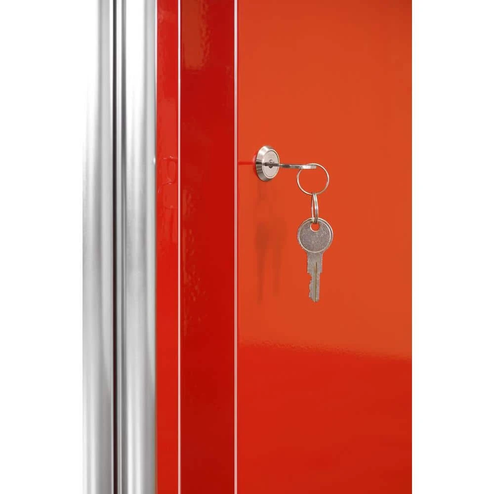 - Sturdy double-wall doors include interior pegboard panels for additional storage (peg hooks sold separately)