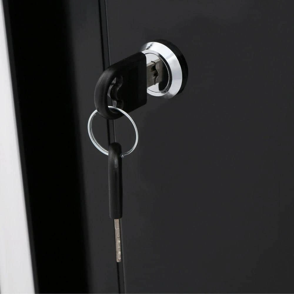 - Lockable cabinet doors equipped with magnetic closures (includes two lock keys)