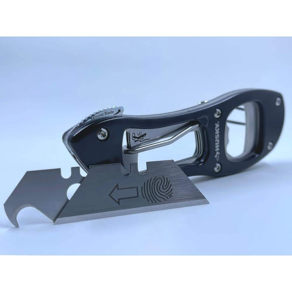 The Husky retractable 2-blade utility knife provides instant access to 2 different standard blades (standard and hook). Unique thumb control feature allows blade to extend and retract super fast. To change blade simply lift blade lock, extend blade fully and replace, no tools needed. Blade Gate provides extreme blade retention. Can be used with 1-hand, right or left operation. Safe, light, thin, feels comfortable when it use or in your pocket. Use of belt clip makes it always handy.