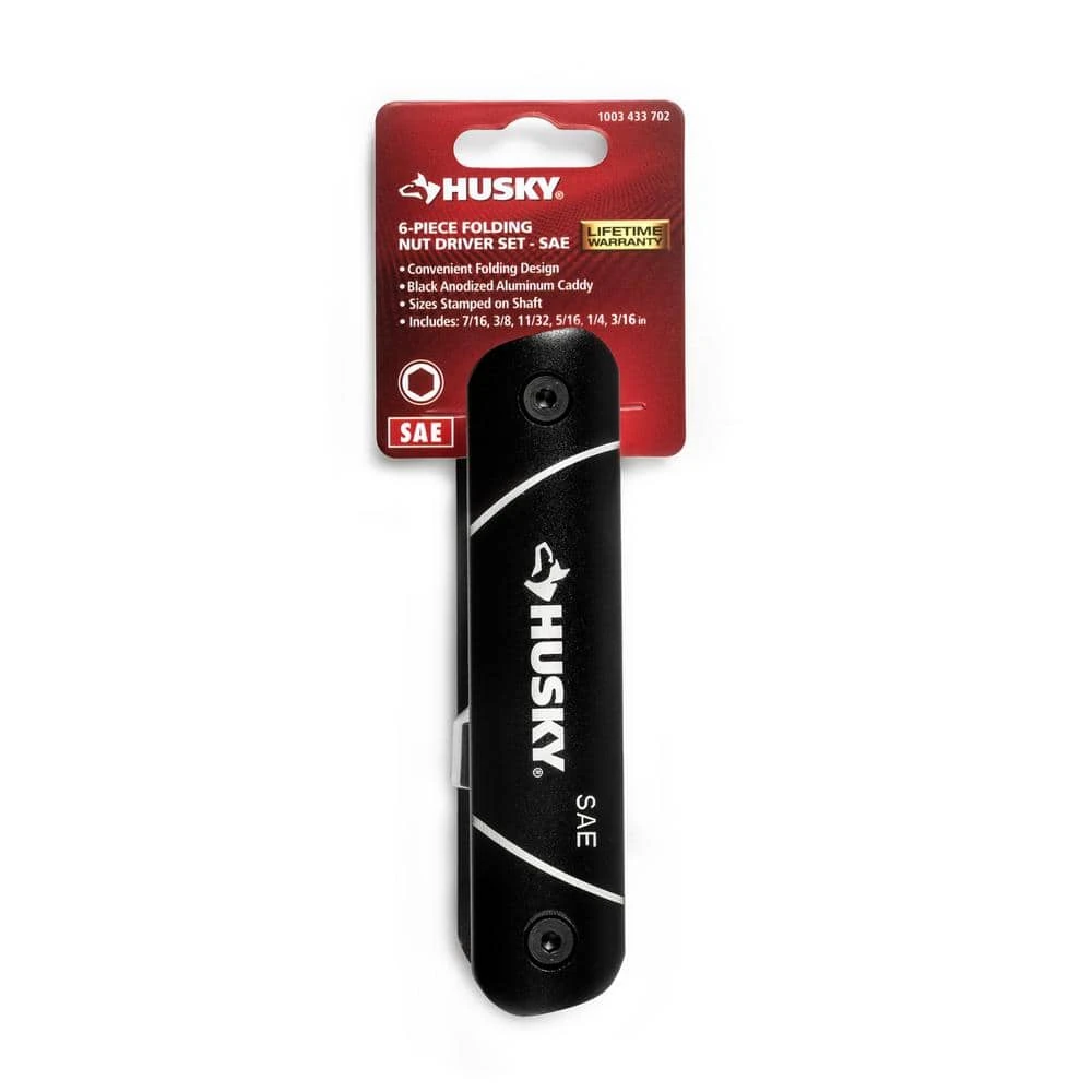 The Husky Folding Nut driver set features 6 nutdrivers that fold up into a slim handle, perfect for stashing in your work belt or pocket. Ideal for home appliance repairs and building furniture, this folding nut driver set has got you covered. Built with an alloy steel shaft and nickel chrome finish, you’ll have all the strength you need to finish the job.