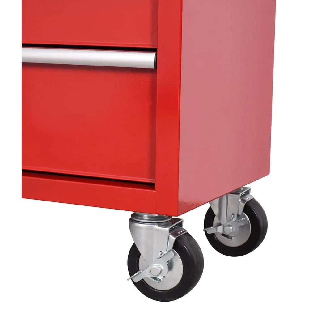 This Husky 42 in. 8-Drawer Rolling Tool Cabinet in Red is great for storing and organizing all your tools. The cabinet is made from high grade all welded steel construction and finished with a tough industrial red powder coat paint. 8-Drawers provide a total of 12,548 cu. in. storage capacity. Drawers are all full-extension and glide effortlessly on soft-closing ball-bearing slides that can support up to 100 lbs. The ergonomic handle and stylish 5 in. x 2 in. casters allow you to easily move your cabinet around your workspace. Total weight capacity of the cabinet is 1,500 lbs. The cabinet also has an internal keyed locking system, with 2 keys provided, for added security.