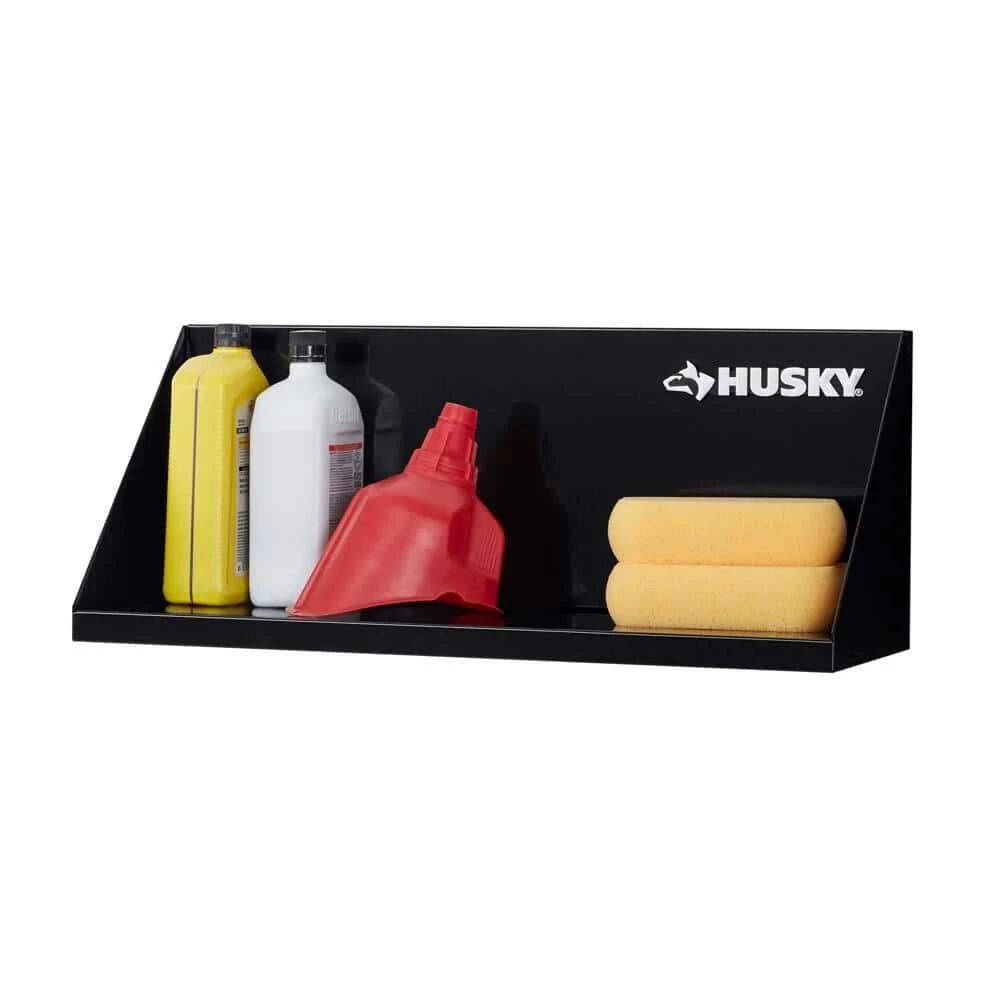 Organize supplies and equipment with this Husky garage wall shelf. Perfect for a garage, mudroom or laundry room, it holds up to 75 lbs. of evenly distributed weight. It features rust and temperature-resistant powder-coated steel construction.