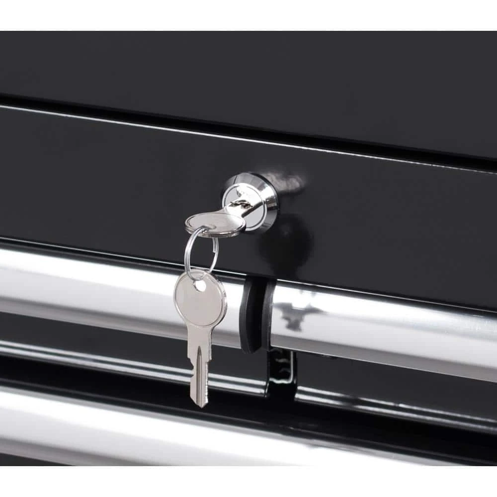Make the best use of your garage with the efficiently designed Husky 26 in. 5-Drawer Tool Chest in Gloss Black. Great for holding heavy equipment, this tool chest is built with an all-welded steel construction to offer increased durability. This tool chest has a powder coat paint finish that features rust-resistant properties, which adds a protective layer to your unit to ensure your hardware remains secure when not in use. It has a 25.9 in. W x 15.7 in. D x 2.5 in. H lid that features gas struts, providing improved safety when opening and closing. It features 5-drawers – 2 small, 2 medium and 1 large and features a total holding capacity of 4,922 cu. in., offering plenty of storage for all your equipment. Perfect for effortless closing and opening, this Husky high-quality tool chest is made with soft-closing ball bearing slides that can hold up to 100 lbs. to handle heavy loads. This high-quality tool chest is made with an internal locking system with 2 keys, designed to offer you peace of mind. Designed to occupy less space, it features 2 recessed handles, so you can place it in any corner of your workshop. Stay organized on every job with the Husky 26 in. 5-Drawer Tool Chest in Gloss Black.