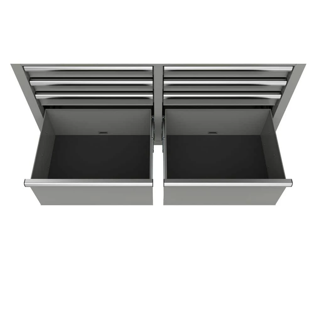 - Drawer dimensions: top drawer: 41.7 in. W x 15.4 in. D x 3.9 in. H, 4-small drawers: 19.5 in. W x 15.4 in. D x 3.0 in. H, 2-medium drawers: 19.5 in. W x 15.4 in. D x 3.6 in. H, 2-large drawers: 19.5 in. W x 15.4 in. D x 9.4 in. H