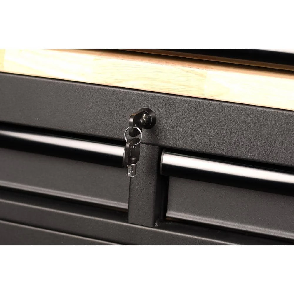 - Wood work surface seen in the photos is transferred from the Husky 61 in. 15-drawer mobile workbench (model H61MWC15HP), sold separately