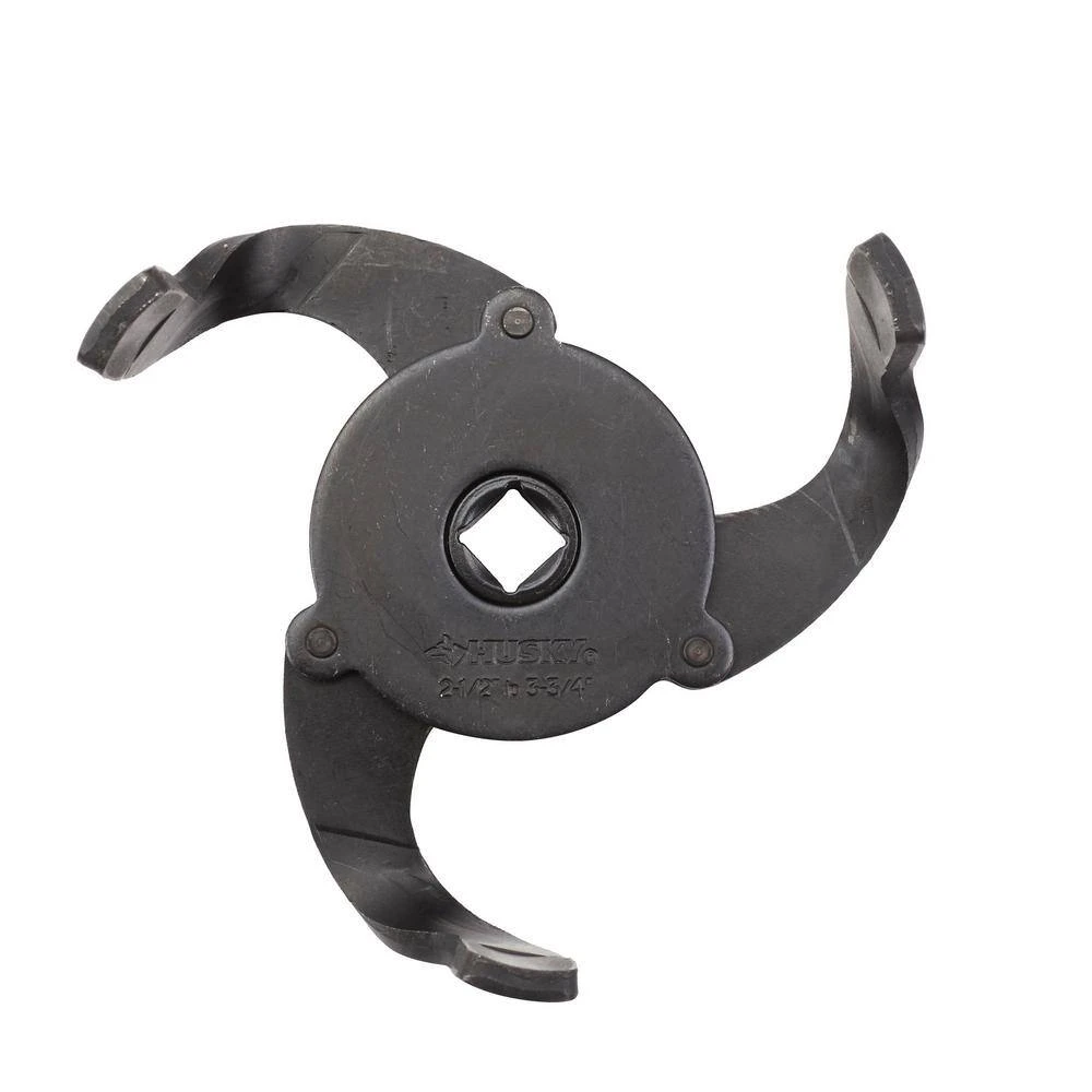 Don’t know your oil filter size, no problem when you use the Husky 3-jaw universal oil filter wrench. This wrench works with any 3/8 in. square drive tools, such as a breaker bar or ratchet; as soon as torque is applied the jaws tightly grab the end of the oil filter allowing it to be removed with ease. Using this style of wrench makes changing the oil most passenger cars or light-duty truck a breeze for either DIY or professional mechanics.