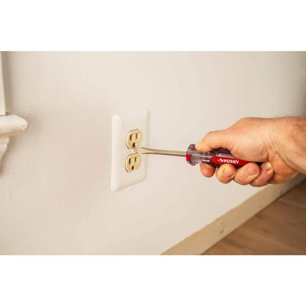 The 12-piece Husky Variety Screwdriver Set features impact- and chemical-resistant acetate handles. The forged steel blade is chrome plated for added corrosion resistance. The slotted tips are serrated, which provides increased grip and reduces slipping to better avoid fastener rounding. The Philips tips are precision formed to fit the fastener each and every time.