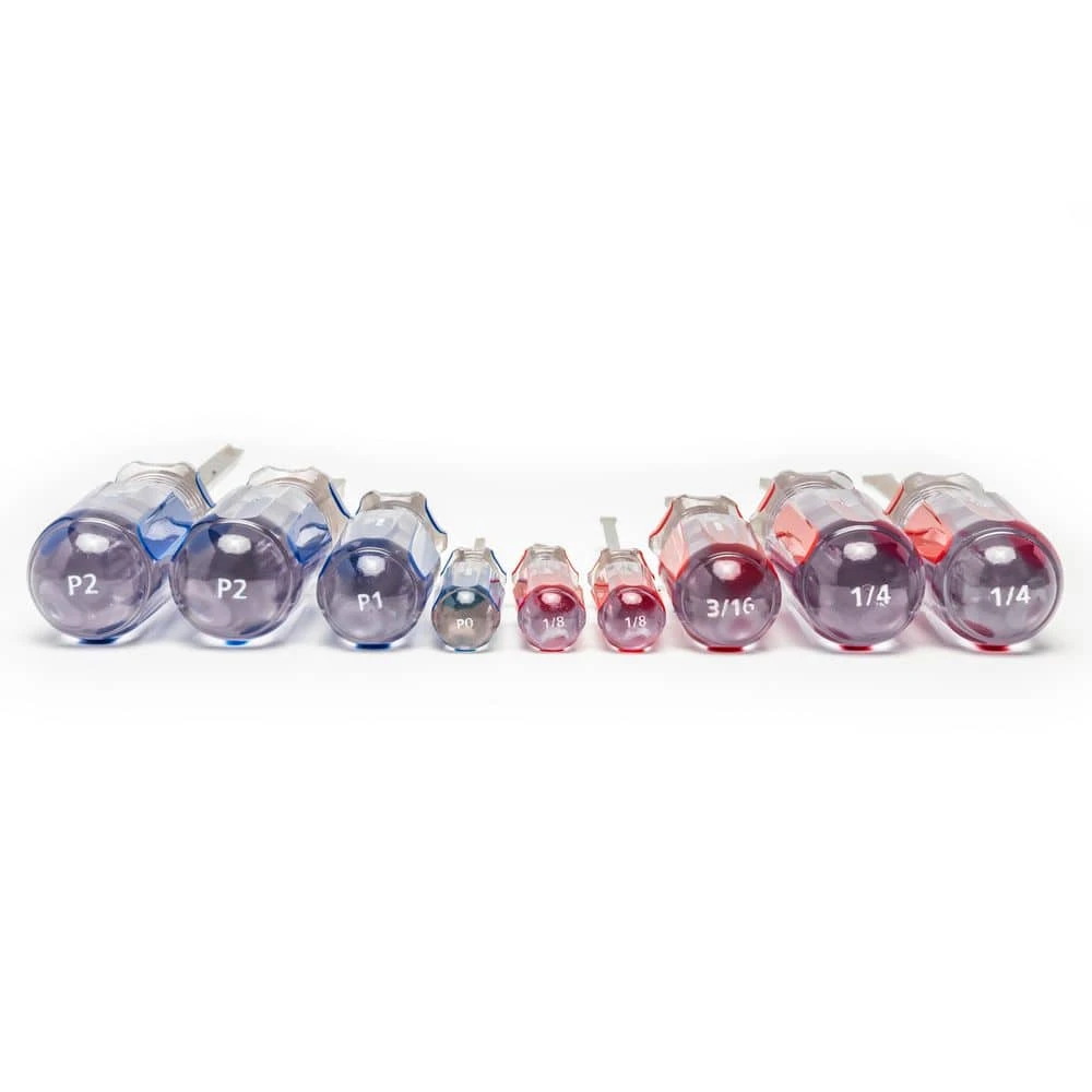 - Color-coded handles for easy tip identification, blue for Phillips, red for slotted, black for Torx