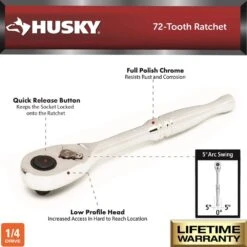 Husky 1/4 In. Drive SAE And Metric Socket And Bit Set With Ratchet And Rails (70-Piece)