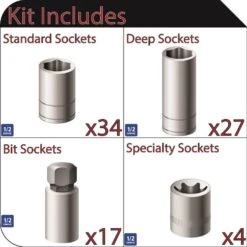 Husky 1/2 In. Drive SAE And Metric Socket And Bit Set With Ratchet And Rails (57-Piece)