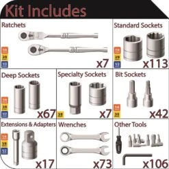 Husky 1/4 In., 3/8 In. And 1/2 In. Mechanics Tool Set With EVA Storage Trays (222-Piece)