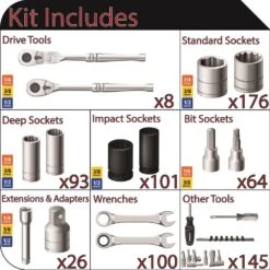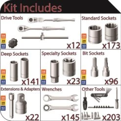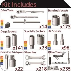 Husky 1/4 In., 3/8 In. And 1/2 In. Drive Master Mechanics Tool Set With Impact Sockets (1025-Piece)